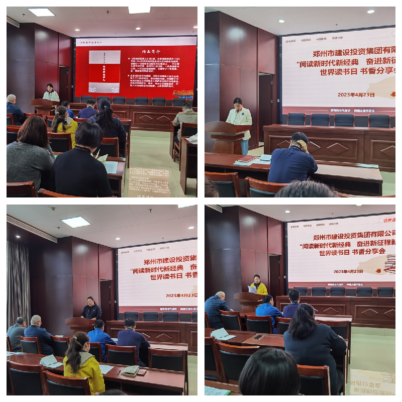 為推進全民閱讀、建設書香社會,以書香企業建設進一步堅定文化自信、提升文化自覺。4月23日上午,在第28個“世界讀書日”到來之際,鄭州市建設投資集團有限公司組織開展“閱讀新時代新經典 奮進新征程新偉業”讀書心得分享活動,公司各部室、各項目部、各控股公司60余人參加此次活動。