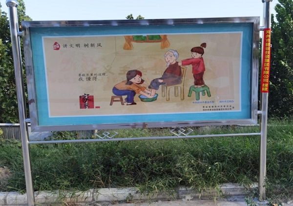 四、設置宣傳載體,營造文明家園濃郁氛圍。今年,集團公司為郭崗村提供3萬余元幫扶資金幫助其打造了精神文明專欄,分為家風家訓(名人家風)專欄,“講文明 樹新風”(孝當先、傳承家風)、“文明健康 有你有我”公益廣告等內容,使社會主義核心價值觀深刻融入到村民的生產生活和精神世界,形成全體村民的修身行善共識和明禮守法自覺,為促進郭崗村經濟健康發展、構建美麗鄉村、文明家園打下良好根基。